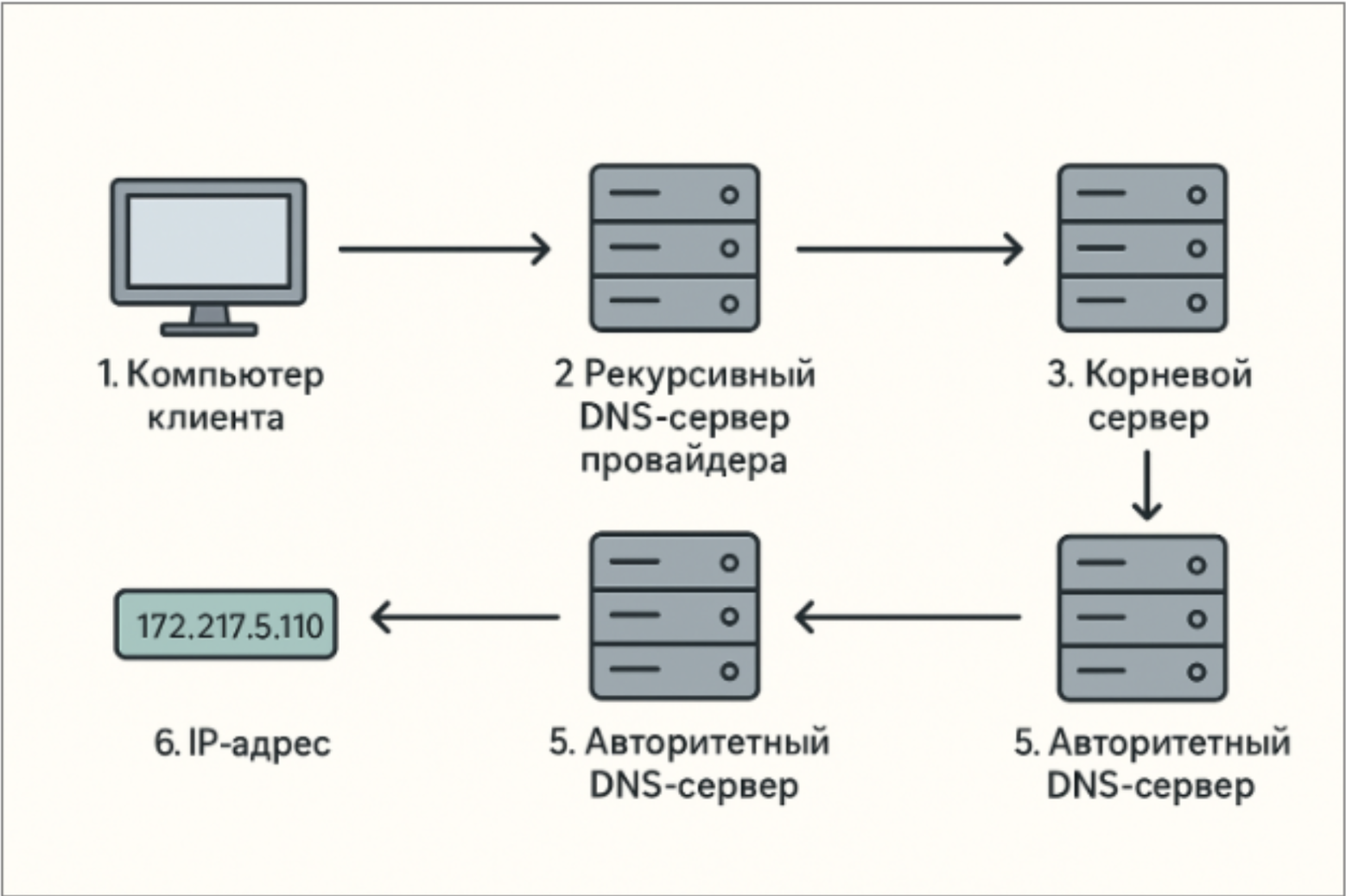 Что такое служба DNS DNS (Domain Name System или система доменных имен) - простыми словами это телефонная книга Интернета. Первая версия протокола DNS была разработана Полом Мокапетрисом в 1983 году, а уже в 1987 году была опубликована спецификация протокола, дошедшая до наших дней. Благодаря этому событию Интернет получил возможность стать таким, каким мы знаем его сегодня - доступным, глобальным и динамичным. Стандартизация протокола DNS осуществляется через множество документов RFC (англ. Request for Comments, Рабочее предложение), публикуемых открытым международным сообществом IETF (Internet Engineering Task Force, Инженерный совет Интернета). Основные из них: RFC 1034 “Domain Names – Concepts and Facilities”, описывающий концептуальную модель системы доменных имен, определяющий функции DNS и принцип разделения ответственности между администраторами зон, передачи полномочий через NS-записи. RFC 1035 “Domain Names – Implementation and Specification”, описывающий базовые типы записей (о них поговорим далее) и протоколы обмена. Есть и другие - RFC 3596, RFC 2782, RFC 4025, RFC 4255, RFC 4408, RFC 6698, RFC 7208 и т.д., в которых происходит развитие протокола, введение новых типов записей и механизмов. Основные функции DNS, описанные в этих документах: Преобразование доменных имён в IP-адреса Обратное преобразование (Reverse DNS) Балансировка нагрузки Хранение дополнительной информации о домене Давайте рассмотрим эти функции более подробно. Мы привыкли оперировать понятными и легкими для запоминания доменными именами, такими, как mail.ru, neuroinform.ru или vk.com. Доменное имя — это легко запоминающийся, уникальный адрес веб-сайта или другого ресурса в интернете. Но сетевые устройства при передаче информации оперируют IP-адресами, такими как 90.156.232.4, 82.146.54.13 или 87.240.129.133, которые не так удобны для человека. Представьте, что вы хотите позвонить в компанию Нейроинформ. Вы знаете имя компании. Но операторы сотовой связи, управляя вызовами и SMS, работают с номерами телефонов, а не именами абонентов. Тогда вы открываете телефонную книгу и находите запись: «Нейроинформ - +7 (499) 322-23-12». Теперь можно звонить. Служба DNS выполняет в Интернете роль такой телефонной книги, только вместо имён людей и компаний - домены сайтов, а вместо телефонов - IP-адреса. Такое преобразование происходит совершенно незаметно и автоматически каждый раз, когда вы вводите имя сайта в адресную строку браузера. Для демонстрации такое преобразование можно сделать вручную с помощью утилиты nslookup, которая входит в стандартный набор инструментов Windows и большинства дистрибутивов Linux. Для того, чтобы воспользоваться утилитой в Windows выполните следующие шаги: Нажмите клавиши Win + R одновременно. Откроется диалоговое окно «Выполнить». В открывшемся окне введите «cmd» без кавычек и нажмите Enter. Откроется окно командной строки. Введите команду «nslookup neuroinform.ru» без кавычек. Вместо «neuroinform.ru» можете указать любое другое доменное имя. И нажмите Enter. В результате вы получите IP-адрес, соответствующий введённому доменному имени. Именно на этот адрес браузер обращается при загрузке страниц сайта. Преобразование доменного имени в IP-адрес называется разрешением имени. Из чего состоит глобальная система DNS-серверов Давайте разберемся как устроена и принцип работы этой глобальной телефонной книги, у которой утилита nslookup и браузер запрашивают адреса. Дело в том, что никто не хранит «весь интернет» у себя. Служба DNS — это иерархич