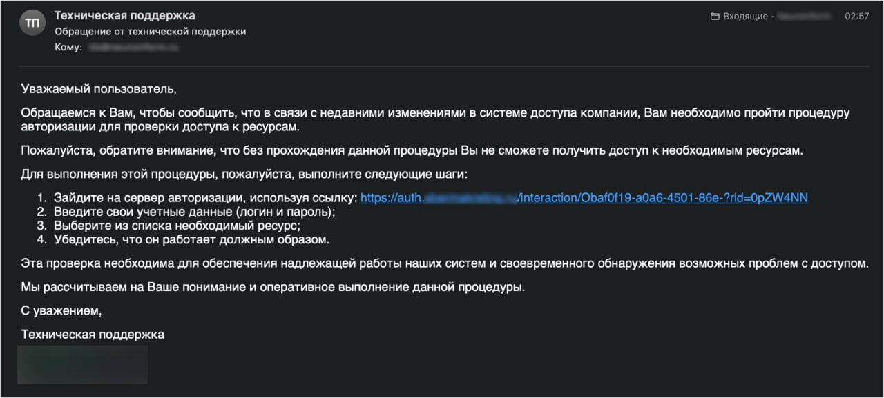 45% сотрудников откликаются на просьбу протестировать ресурс своей фирмы или поменять пароль Кибермошенники стали чаще маскировать фишинговые ссылки под проверку сервисов работодателя — для доступа к инфраструктуре различных организаций. Об этом сообщили «Известиям» в компаниях по информационной безопасности. Например, сотрудников просят войти на специальный сайт под своим логином и паролем и протестировать функционирование сервиса удаленного доступа, подтвердить или поменять учетные данные. И около 45% пользователей их вводят. Более того, аналогичные рассылки делают и со взломанных адресов партнеров фирм. Отправить по ссылке Механизм мошеннических рассылок, которые выглядят как внутренние письма организаций, стал особенно популярен у злоумышленников в конце 2024-го и начале 2025 года. Об этом «Известиям» сообщили в компаниях по информационной безопасности. Для получения доступа к инфраструктуре той или иной фирмы злоумышленники оформляют письмо как просьбу к сотрудникам о проверке того или иного сервиса либо же как требование подтвердить или сменить пароль. «Обращаемся к вам, чтобы сообщить, что в связи с недавними изменениями в системе доступа компании Вам необходимо пройти процедуру авторизации для проверки доступа к ресурсам, — говорится, например, в одном из писем от фейкового работодателя. — Зайдите на сервер авторизации, используя ссылку, введите свои учетные данные (логин и пароль), выберите из списка необходимый ресурс, убедитесь, что он работает должным образом». Далее «команда технической поддержки» сообщает, что «рассчитывает на понимание и оперативное выполнение этой процедуры». Таким атакам за последние два месяца подверглись компании из финансового сектора, ритейла, логистики, производства и телекома, сообщил «Известиям» генеральный директор компании по информационной безопасности «Нейроинформ» Александр Дмитриев. — Всего в декабре среди наших клиентов было 18 компаний, которым были отправлены такие письма, а с 1 по 20 января — еще 12, — сообщил он. Александр Дмитриев также привел в пример конкретный кейс одного из своих клиентов (название компании нельзя разглашать из-за договора о конфиденциальности). Это ритейл-компания. Сначала злоумышленники выявили возможность подобрать электронные адреса сотрудников компании. Для этого они подбирали имена пользователей, зарегистрированных в системе организации. Если пользователь существовал, то после введения неправильного пароля появлялась капча. А если предполагаемого имени пользователя не было, то капча не возникала. На основании этой ошибки системы мошенники подобрали 50 учетных записей, вычислили их электронные адреса и отправили сотрудникам фишинговые письма. — У одного из сотрудников, который ввел свои логин и пароль, оказалось разрешение на подключение к удаленному рабочему столу. Злоумышленники зашли на почту, нашли письмо от техподдержки с описанием того, как можно подключиться к VPN, и таким образом попали во внутреннюю сеть компании, — рассказал Александр Дмитриев. Далее, воспользовавшись недостатками в настройках контроллера-домена, киберпреступники получили права администратора домена. Спустя примерно две недели после фишинговой рассылки все данные были зашифрованы. Впрочем, у этой компании была резервная копия системы на удаленн
